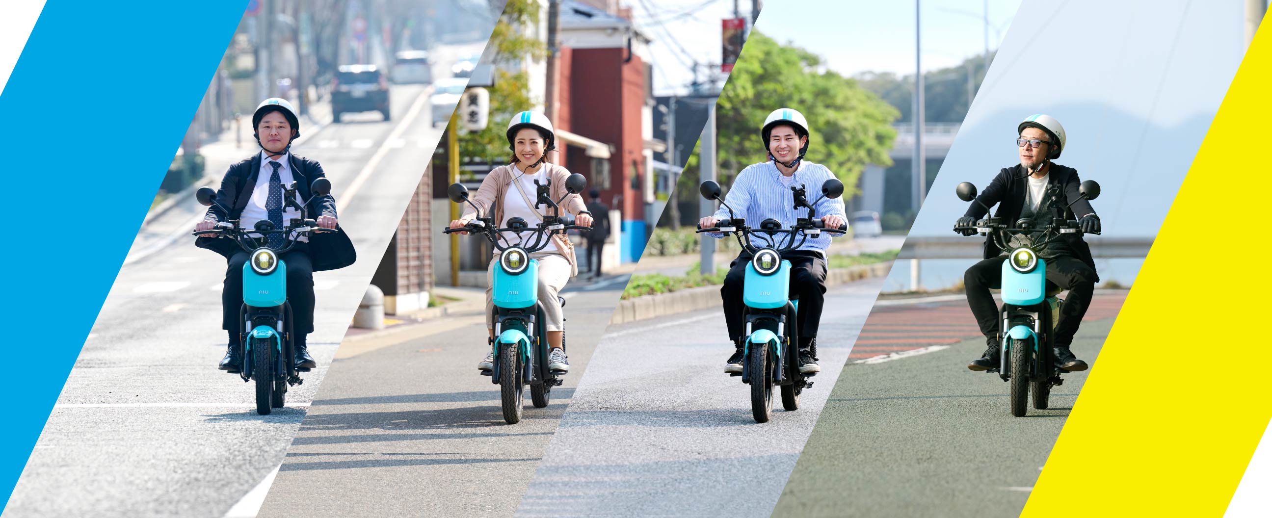 使っているのですか?「XEAM」ブランドが取り扱う【niu UQi+Sport 2022】のEVスクーターを使用しています。こちらの車両は、満充電時に約40㎞走行する事ができます。