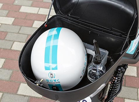 原動機付自転車ですので、ヘルメットの着用は法律で義務付けられています。リアボックスにヘルメットとインナーキャップをご準備していますので、ご自由にご利用ください。またヘルメットはご持参していただいても問題ございません。